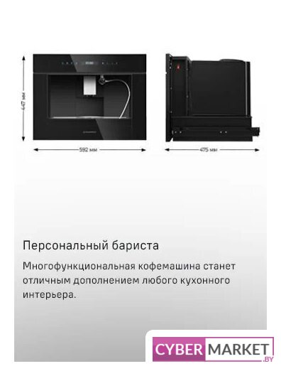 кофемашина, встраиваемая, 1300 Вт, корпус металл/пластик/стекло, капучинатор автоматический, используемый кофе: молотый/зерновой, цвет черный