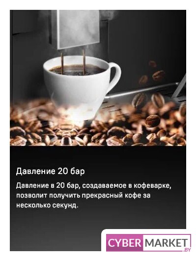 кофемашина, 1465 Вт, корпус металл/пластик, капучинатор автоматический, используемый кофе: зерновой, цвет нержавеющая сталь