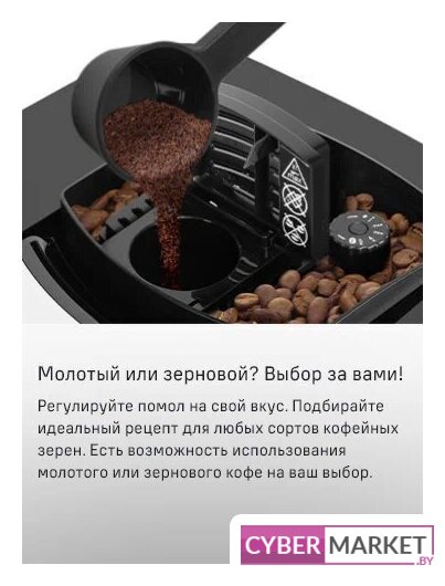 кофемашина, 1455 Вт, корпус пластик, капучинатор автоматический, используемый кофе: молотый/зерновой, цвет черный