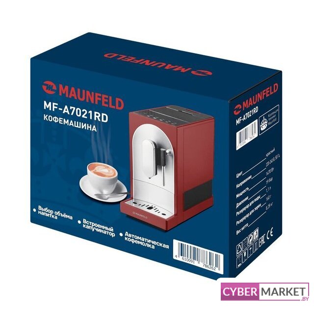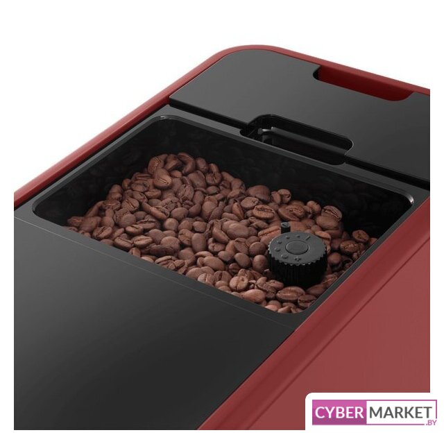 кофемашина, 1580 Вт, корпус металл, капучинатор автоматический, используемый кофе: молотый/зерновой, цвет красный/черный