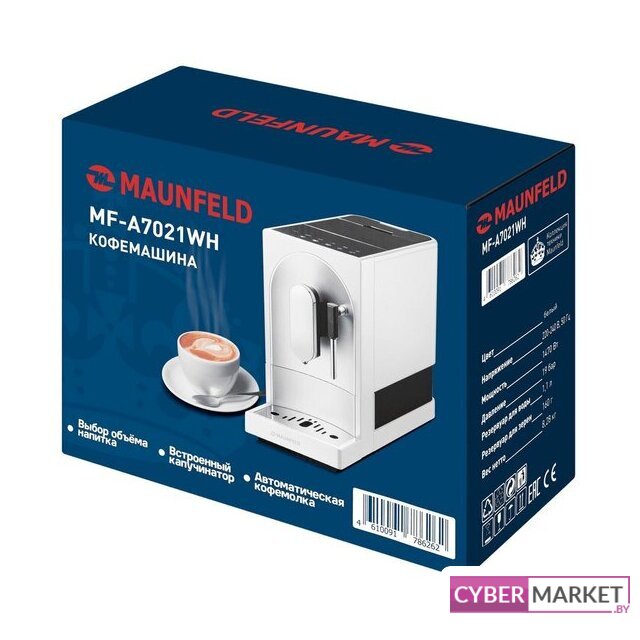 кофемашина, 1450 Вт, корпус пластик, капучинатор автоматический, используемый кофе: зерновой, цвет белый/черный