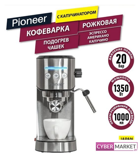 рожковая бойлерная кофеварка, 1200 Вт, корпус металл/пластик, капучинатор ручной, используемый кофе: молотый, цвет нержавеющая сталь