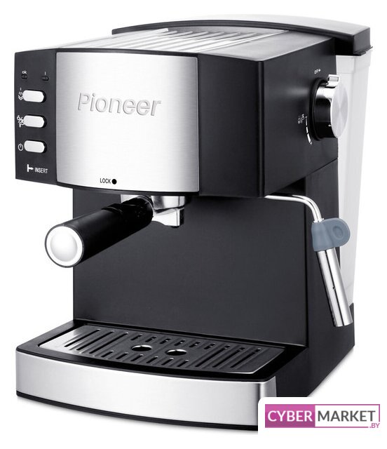рожковая бойлерная кофеварка, 850 Вт, корпус металл/пластик, капучинатор ручной, используемый кофе: молотый, цвет нержавеющая сталь/черный