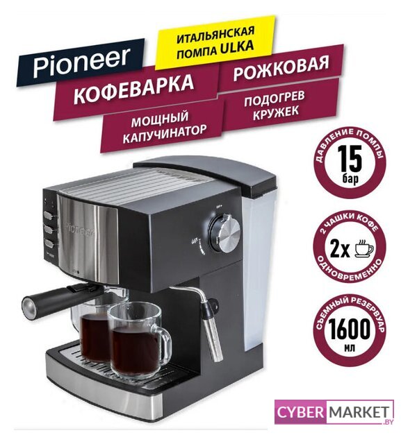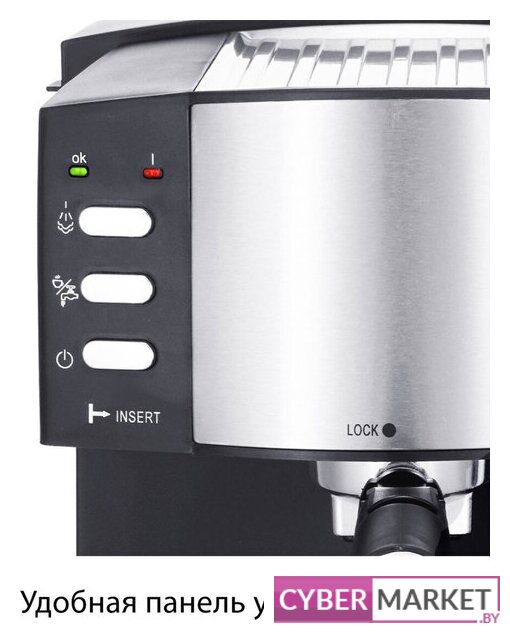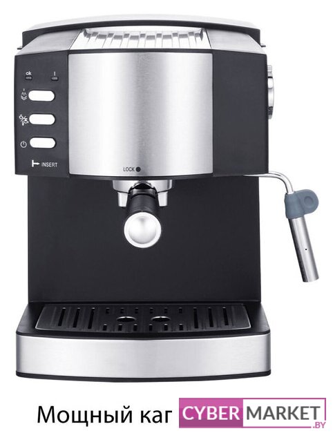 рожковая бойлерная кофеварка, 1500 Вт, корпус металл/пластик, капучинатор ручной, используемый кофе: молотый, цвет черный