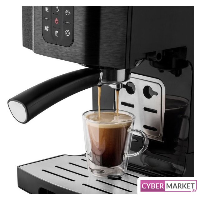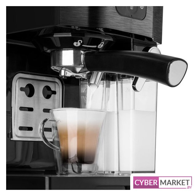 рожковая помповая кофеварка, 1500 Вт, корпус металл/пластик, капучинатор автоматический, используемый кофе: молотый, цвет нержавеющая сталь/черный