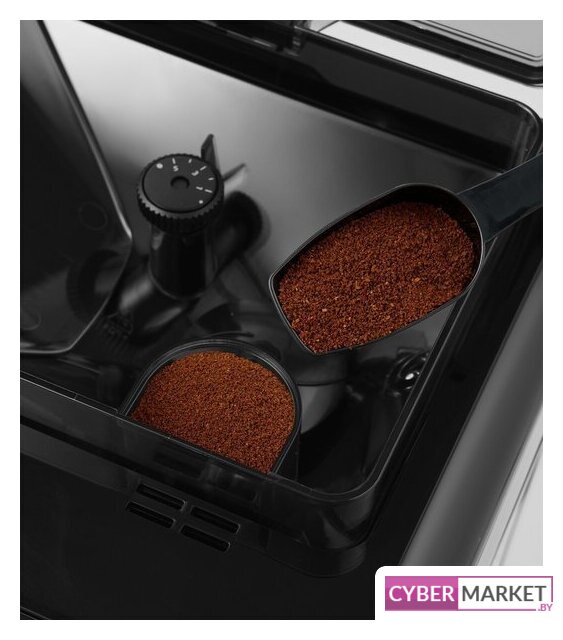 кофемашина, корпус пластик, капучинатор ручной, используемый кофе: молотый/зерновой, цвет нержавеющая сталь/черный
