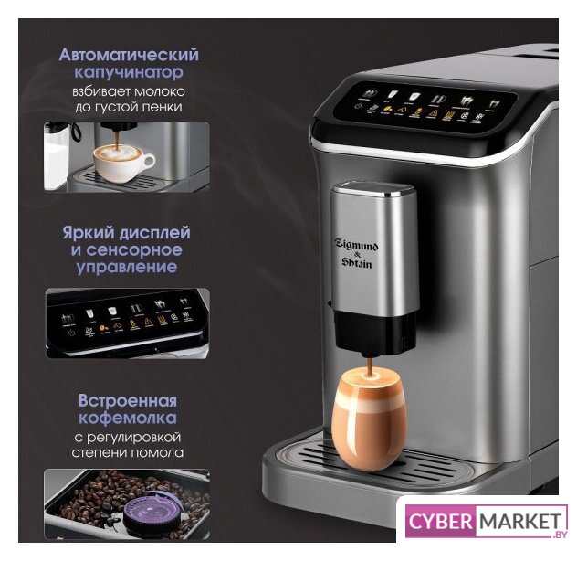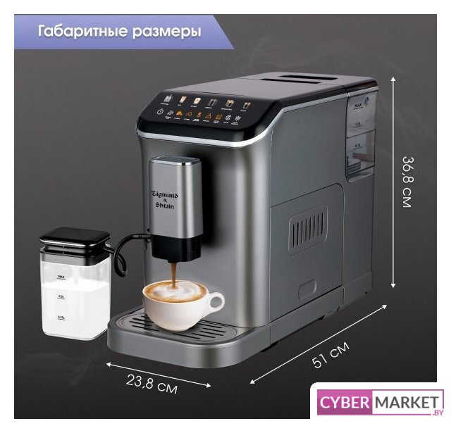 кофемашина, корпус пластик, капучинатор ручной, используемый кофе: молотый/зерновой, цвет нержавеющая сталь/черный