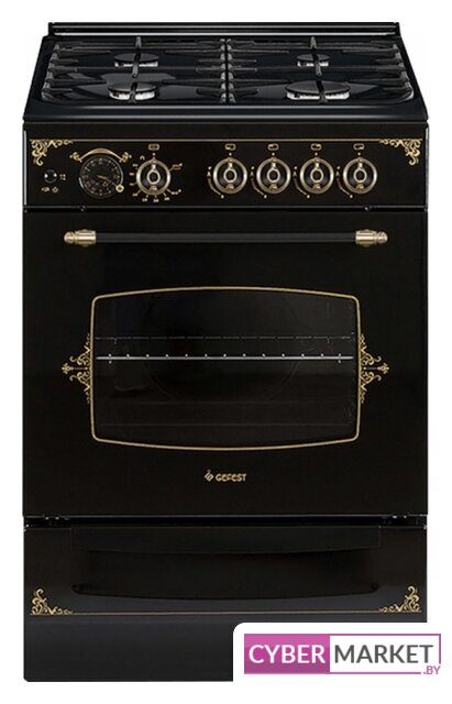 газовая панель + электрический духовой шкаф, газ-контроль конфорок, поверхность: эмалированная сталь, крышка из закалённого стекла, энергопотребление A, управление механическое, таймер механический, размеры (ШхГхВ): 60x60x85 см, цвет черный