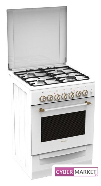 газовая панель + электрический духовой шкаф, газ-контроль конфорок, поверхность: эмалированная сталь, управление механическое, без таймера, размеры (ШхГхВ): 50x60x85 см, цвет белый