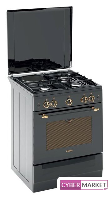 газ + электро панель + электрический духовой шкаф, поверхность: эмалированная сталь, крышка из эмалированной стали, энергопотребление B, управление механическое, таймер механический, размеры (ШхГхВ): 60x60x85 см, цвет белый