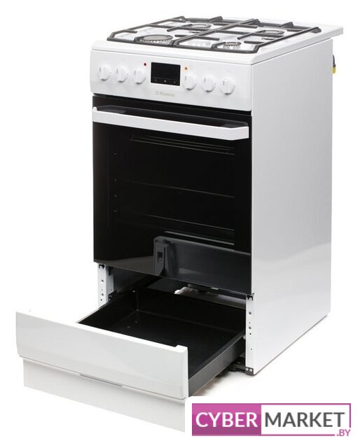 газовая панель + электрический духовой шкаф, газ-контроль конфорок, поверхность: эмалированная сталь, энергопотребление A, управление электронное, таймер электронный, размеры (ШхГхВ): 50x60x85 см, цвет белый