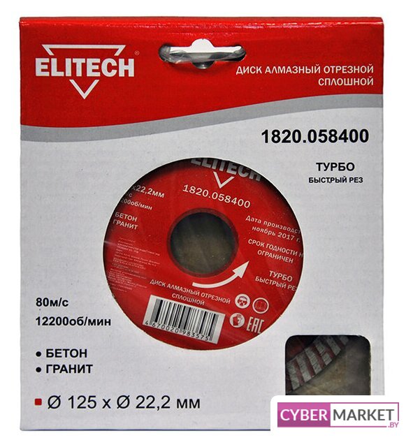 бетон, 1 в наборе, 12200 об/мин, сухая резка, 125 мм, посадочный диаметр 22.23 мм