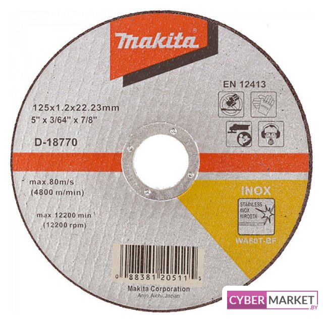 бетон/камень/кирпич, 1 в наборе, 12200 об/мин, сухая резка, 125 мм, посадочный диаметр 22.23 мм