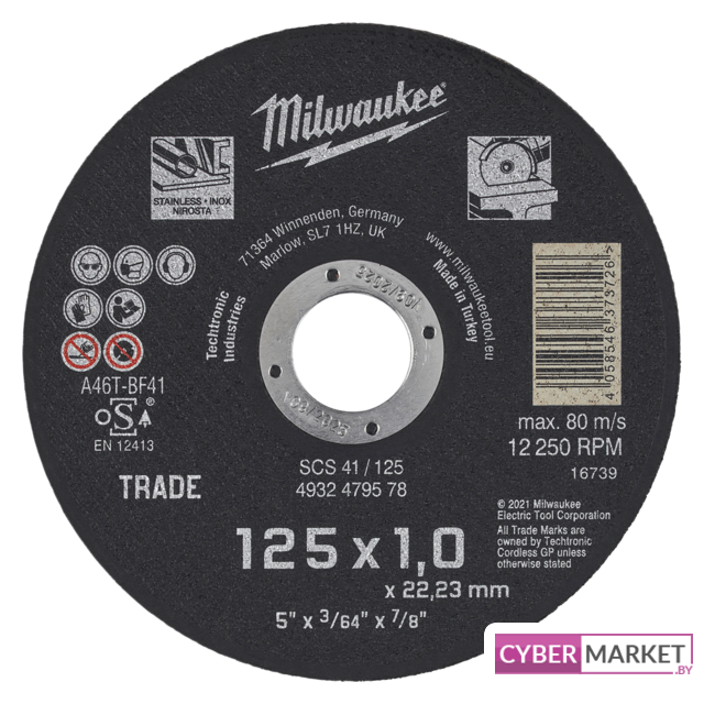 металл, 1 в наборе, 12250 об/мин, 125 мм, посадочный диаметр 22.23 мм