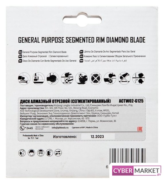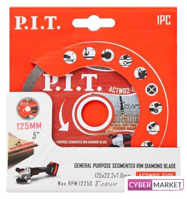 бетон/камень/керамогранит/кирпич, 1 в наборе, 12250 об/мин, мокрая/сухая резка, 125 мм, посадочный диаметр 22.23 мм