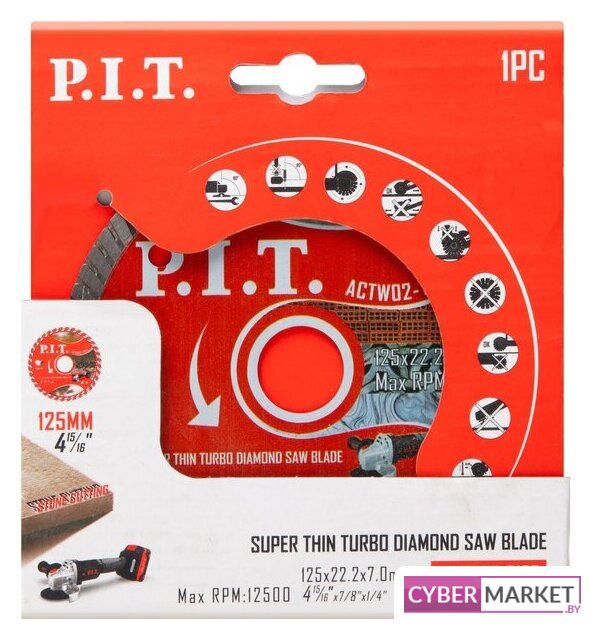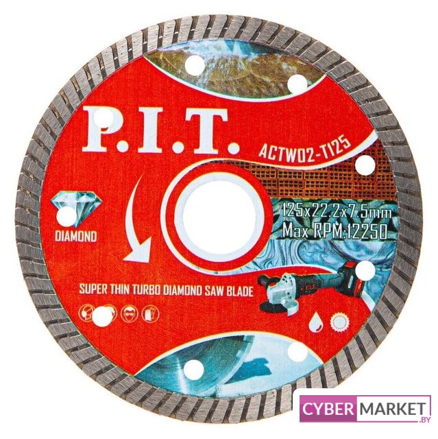 бетон/камень/кирпич, 1 в наборе, 12250 об/мин, мокрая/сухая резка, 125 мм, посадочный диаметр 22.23 мм