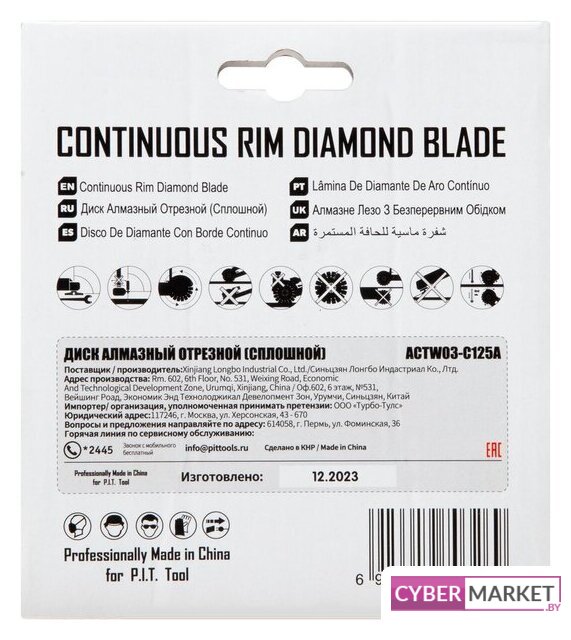 бетон, 1 в наборе, 12200 об/мин, сухая резка, 125 мм, посадочный диаметр 22.23 мм