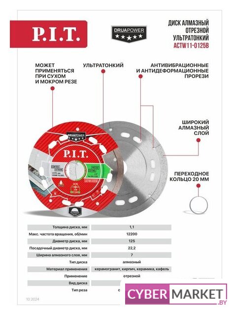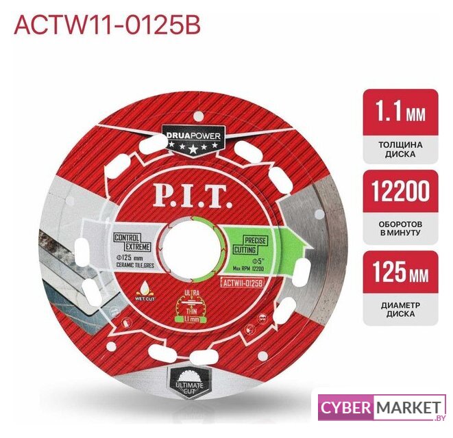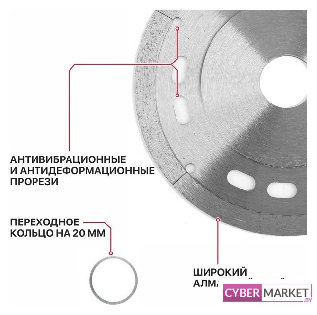 бетон/гранит/камень/мрамор, 1 в наборе, 6600 об/мин, сухая резка, 230 мм, посадочный диаметр 22.23 мм