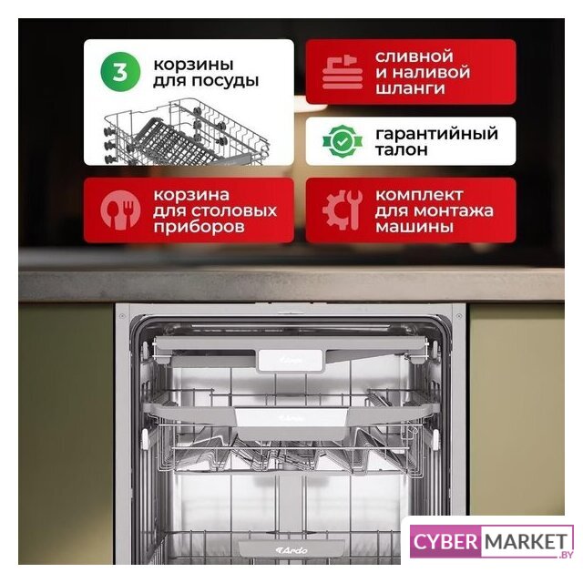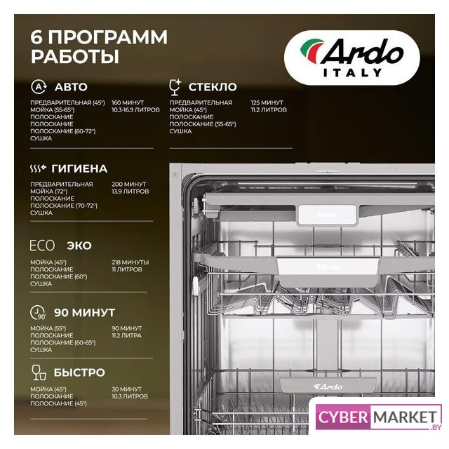 | Дополнительные опции | дополнительная сушка, усиление интенсивности мойки (гигиеническая мойка), половинная загрузка (экономия воды) |