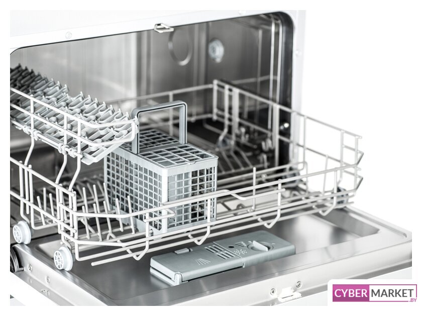 загрузка на 6 комплектов посуды, электронное управление, 6 программ, белый цвет, сушка: конденсационная, индикация на полу: нет