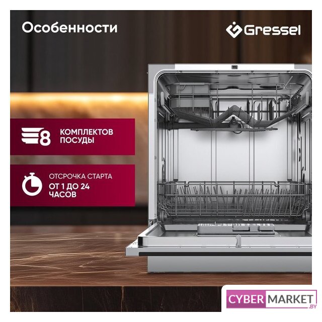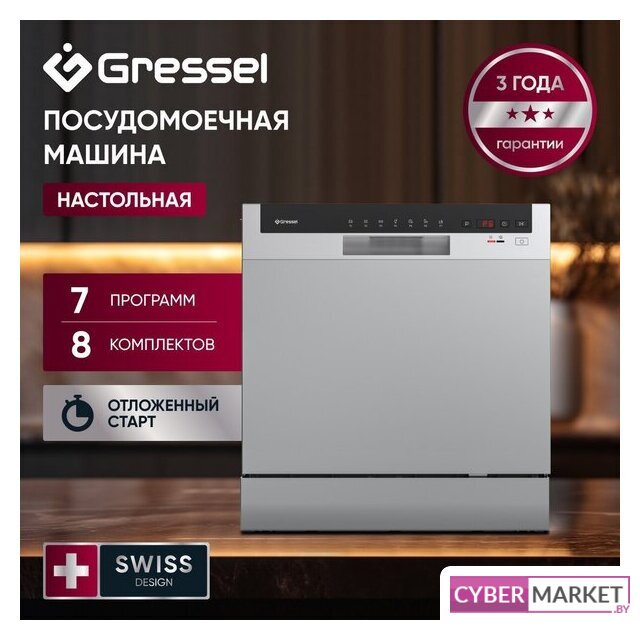 загрузка на 8 комплектов посуды, электронное управление, 7 программ, белый цвет, сушка: стандартная (конденсация), индикация на полу: нет