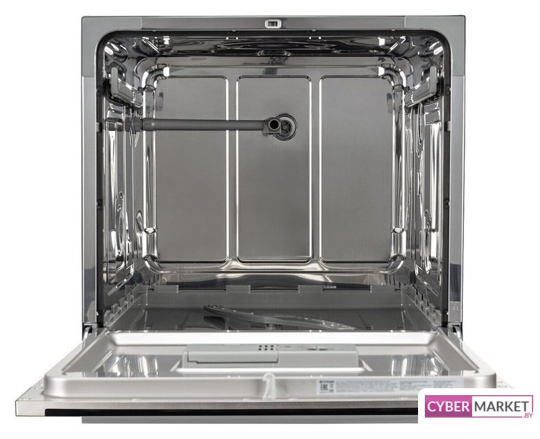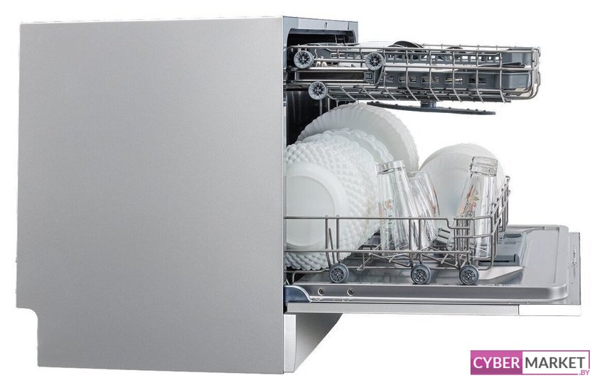 загрузка на 6 комплектов посуды, электронное управление, 6 программ, белый/черный цвет, сушка: конденсационная, индикация на полу: нет