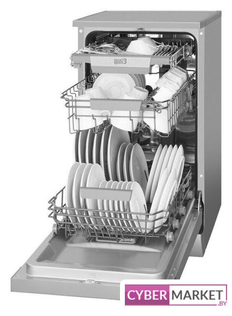 загрузка на 10 комплектов посуды, электронное управление, 7 программ, серебристый цвет, сушка: стандартная (конденсация)/с открыванием дверцы, индикация на полу: нет