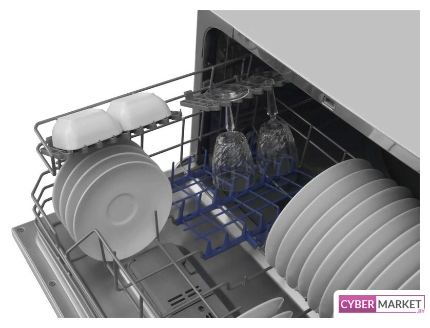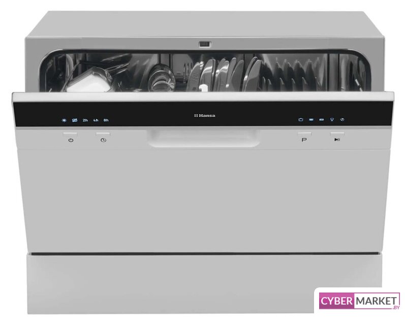загрузка на 6 комплектов посуды, электронное управление, 7 программ, серебристый цвет, сушка: конденсационная, индикация на полу: нет