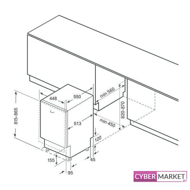загрузка на 10 комплектов посуды, сенсорное управление, 7 программ, 45x57x82 см, черный цвет, сушка: вентиляционная с нагревом, индикация на полу: луч