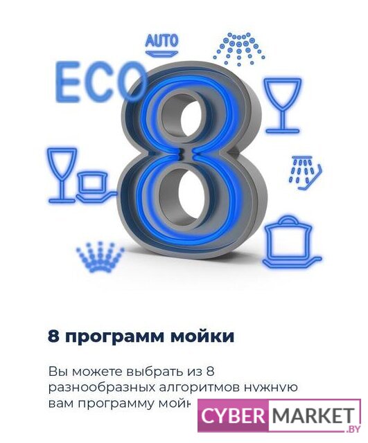 | Дополнительные опции | дополнительная сушка, половинная загрузка (экономия воды), усиление мойки в нижней корзине |