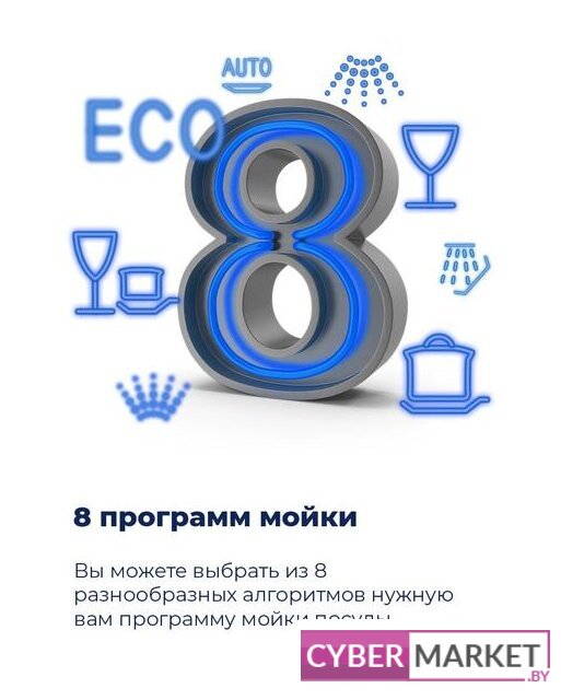 загрузка на 14 комплектов посуды, электронное управление, 8 программ, 59.8x55x82 см, нержавеющая сталь/черный цвет, сушка: стандартная (конденсация)/с открыванием дверцы, индикация на полу: луч
