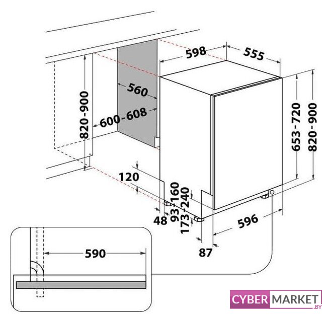 загрузка на 13 комплектов посуды, сенсорное управление, 7 программ, 59.6x55x82 см, черный цвет, сушка: с открыванием дверцы, индикация на полу: луч