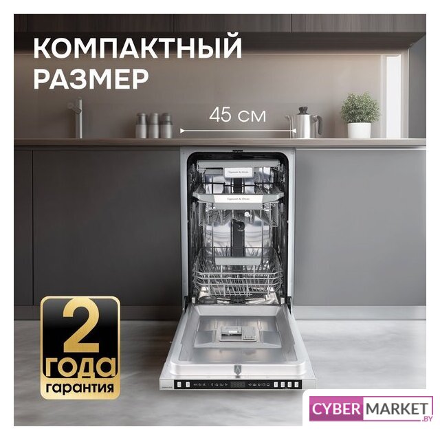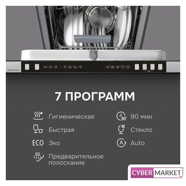 | Дополнительные опции | сокращение времени мойки, дополнительная сушка, усиление интенсивности мойки (гигиеническая мойка), половинная загрузка (экономия воды) |