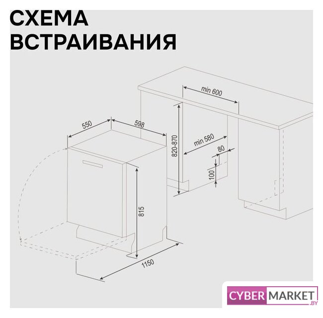 загрузка на 14 комплектов посуды, электронное управление, 5 программ, 59.8x55x82 см, черный цвет, сушка: стандартная (конденсация), индикация на полу: нет