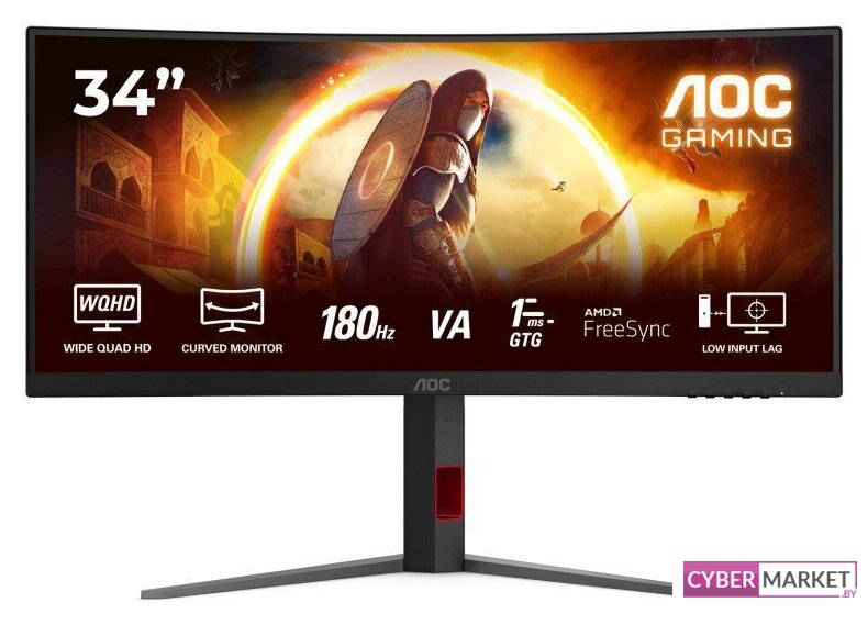 34", 21:9, 3440x1440, VA, изогнутый (1000R), 165 Гц, AMD FreeSync Premium, интерфейсы HDMI+DisplayPort