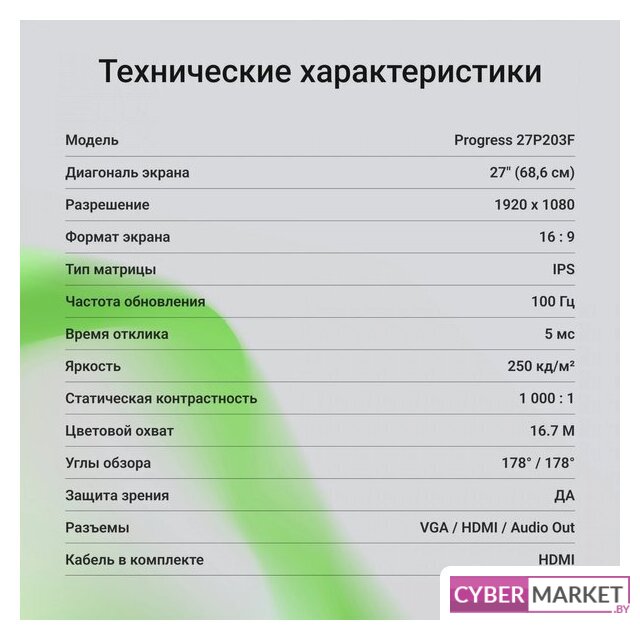 27", 16:9, 1920x1080, IPS, 120 Гц, AMD FreeSync, интерфейсы HDMI+D-Sub (VGA)