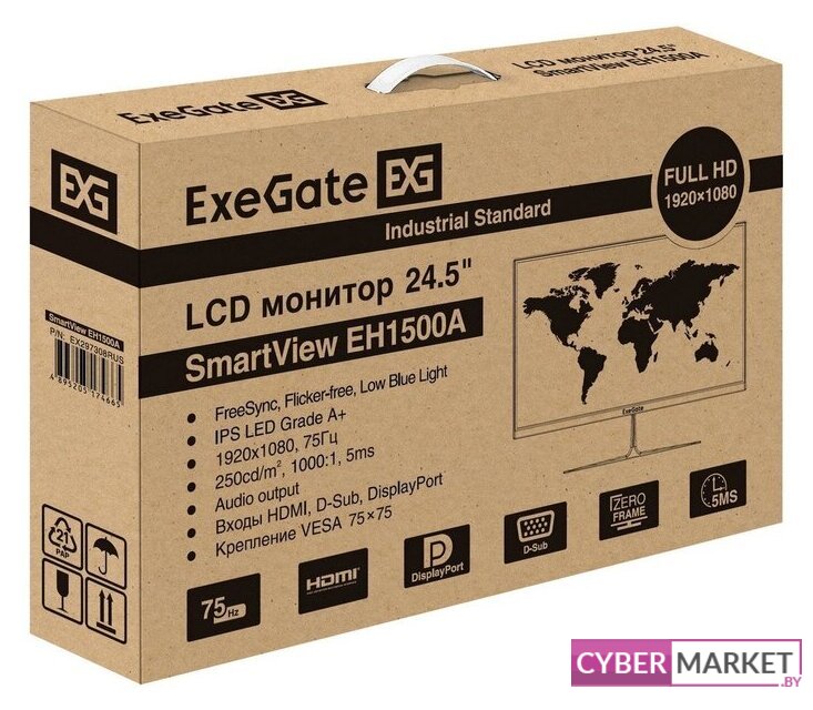 24.5", 16:9, 1920x1080, IPS, 75 Гц, AMD FreeSync, интерфейсы HDMI+D-Sub (VGA)