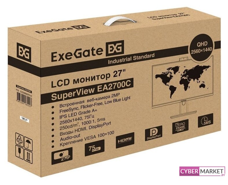 27", 16:9, 2560x1440, IPS, 75 Гц, AMD FreeSync, интерфейсы HDMI+DisplayPort