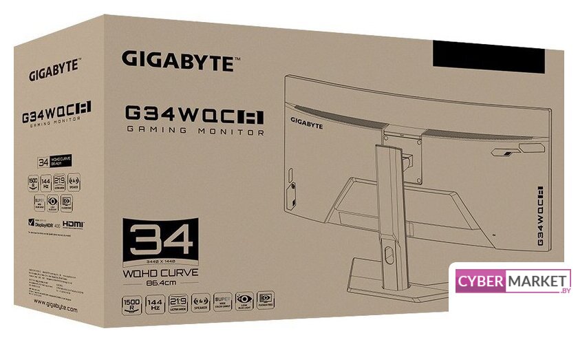 34", 21:9, 3440x1440, IPS, изогнутый (3800R), 60 Гц, интерфейсы HDMI+DisplayPort