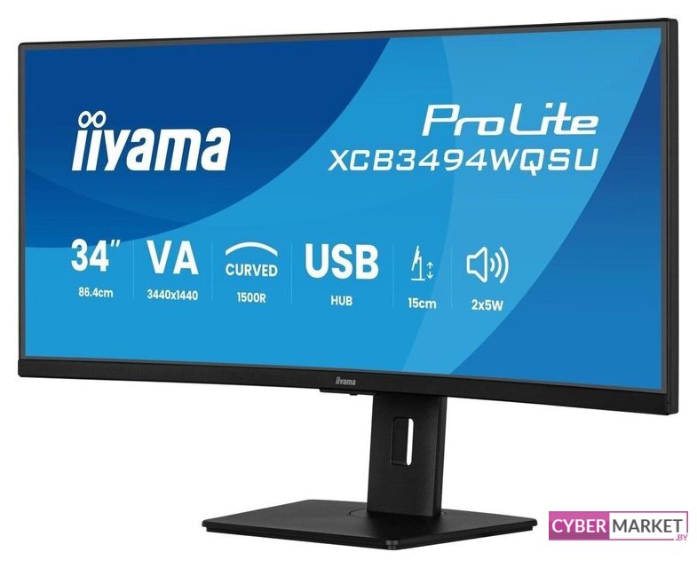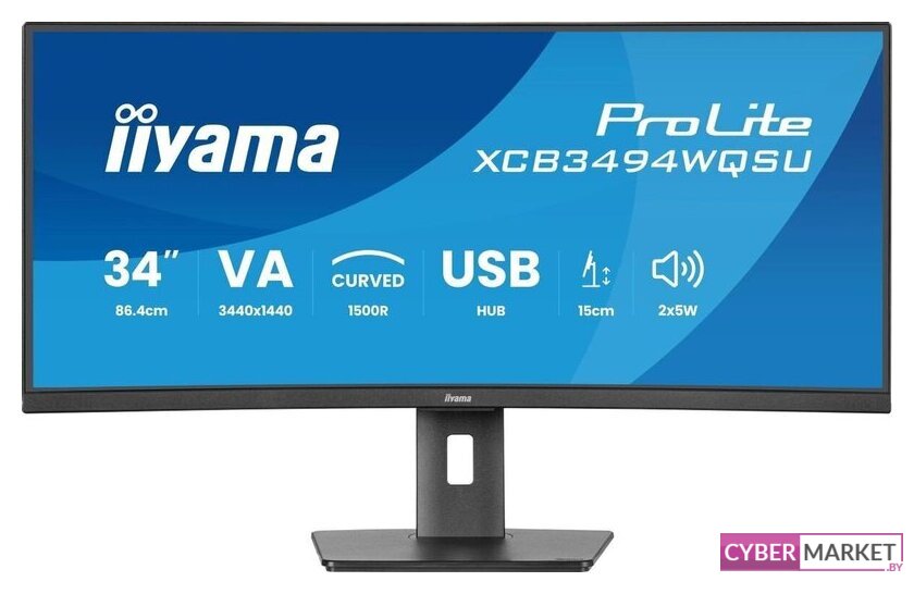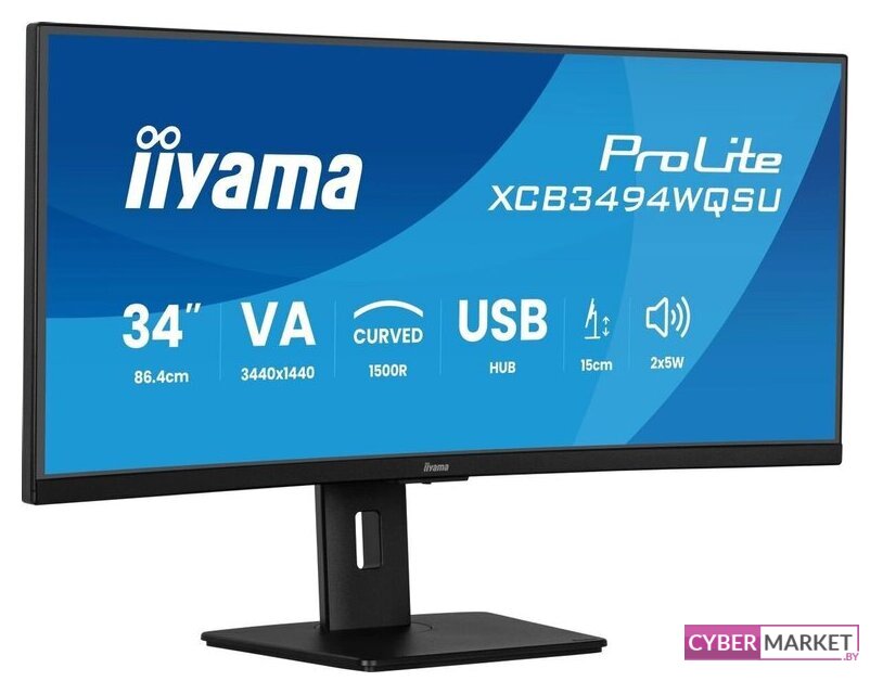 34", 3440x1440, 21:9, изогнутый, VA 60 Гц, глубина 8 бит, яркость 250 нит, динамики, HDMI+DisplayPort+USB Type-C, питание по USB-C до 65 Вт, регулировка высоты