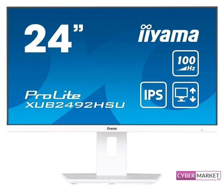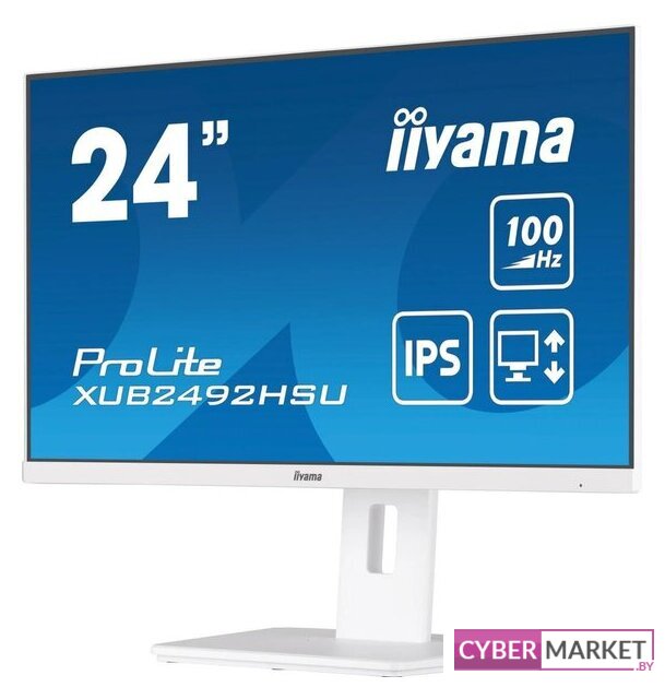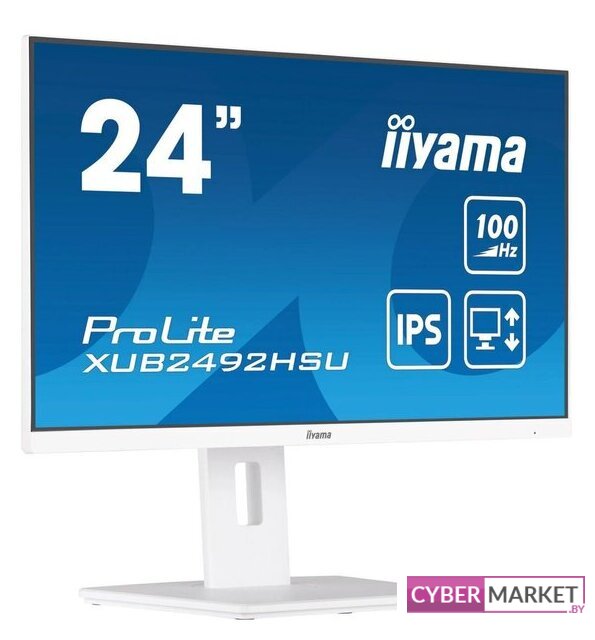 23.8", 1920x1080, 16:9, IPS, 100 Гц, глубина 6 бит + FRC, яркость 250 нит, динамики, HDMI+DisplayPort+D-Sub (VGA), регулировка высоты, портретный режим