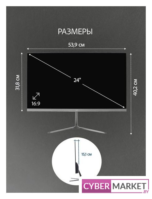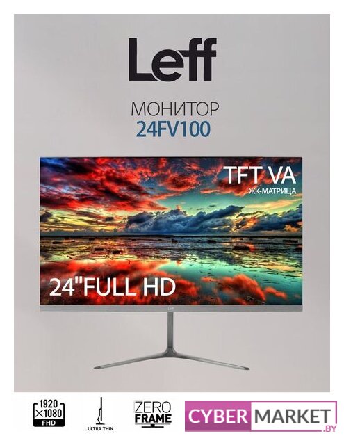 24", 16:9, 1920x1080, IPS, 100 Гц, интерфейсы HDMI+D-Sub (VGA)