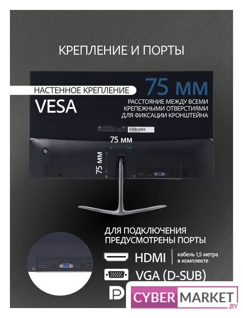 24", 16:9, 1920x1080, VA, 75 Гц, VESA Adaptive-Sync, интерфейсы HDMI+D-Sub (VGA)