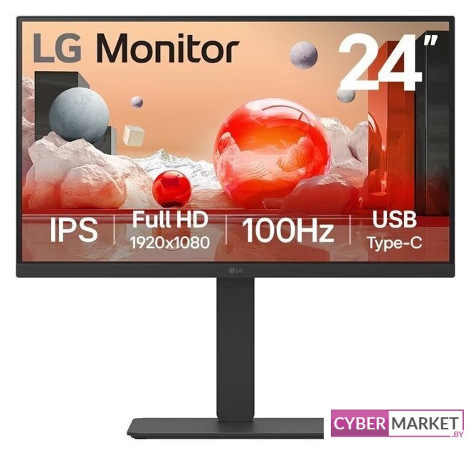 23.8", 1920x1080, 16:9, IPS, 100 Гц, глубина 6 бит + FRC, яркость 250 нит, динамики, HDMI+DisplayPort+D-Sub (VGA), регулировка высоты, портретный режим