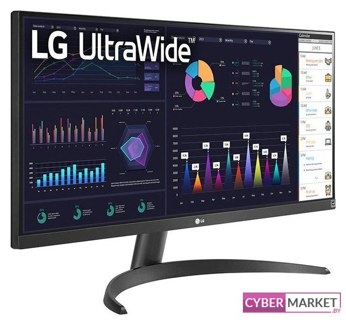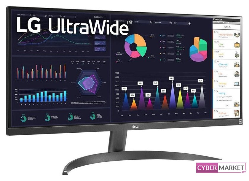 29", 2560x1080, 21:9, IPS, 100 Гц, глубина 6 бит + FRC, яркость 250 нит, HDR10, HDMI+DisplayPort