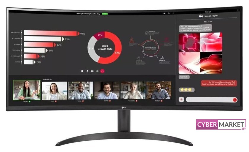 34", 21:9, 3440x1440, VA, изогнутый (1000R), 165 Гц, AMD FreeSync/совместимый с NVIDIA G-Sync, динамики, интерфейсы HDMI+DisplayPort, регулировка высоты, портретный режим