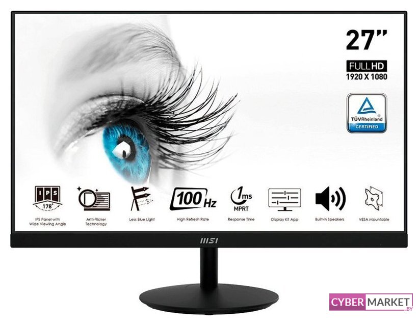 27", 1920x1080, 16:9, IPS, 120 Гц, глубина 6 бит + FRC, яркость 250 нит, динамики, HDMI+D-Sub (VGA)