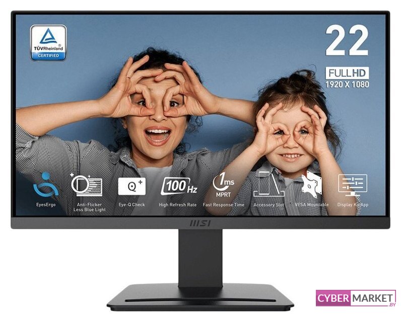 21.45", 1920x1080, 16:9, VA, 100 Гц, глубина 6 бит + FRC, яркость 250 нит, HDMI+D-Sub (VGA)