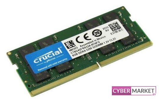 1 модуль, частота 3200 МГц, CL 22T, тайминги 22-22-22, напряжение 1.2 В