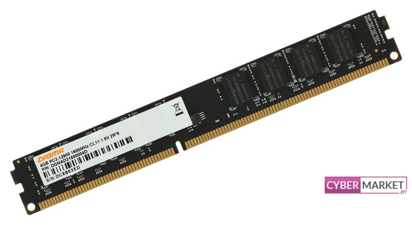4 ГБ, 1 модуль DDR3 DIMM, частота 1600 МГц, CL 11T, напряжение 1.5 В